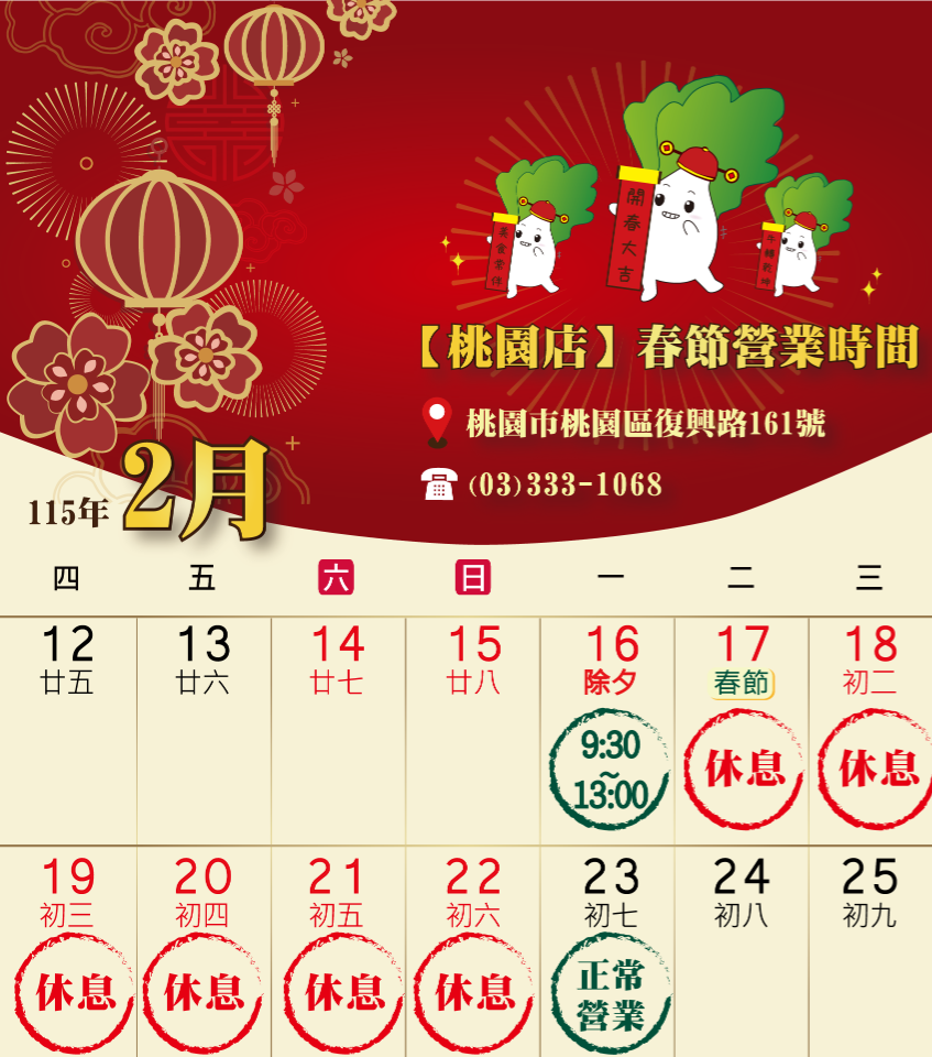 ✨115年春節營業時間✨來囉~