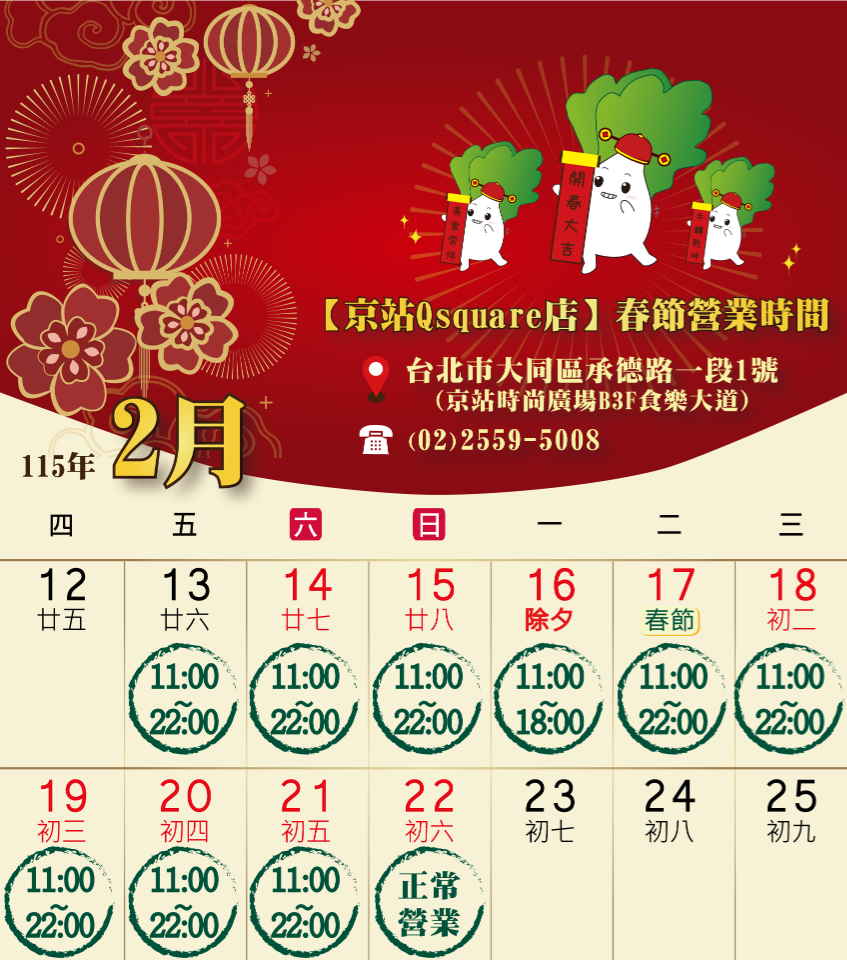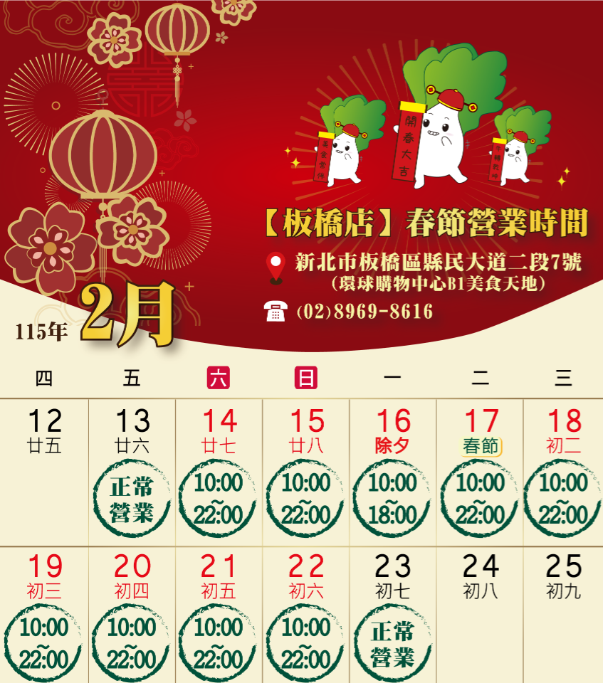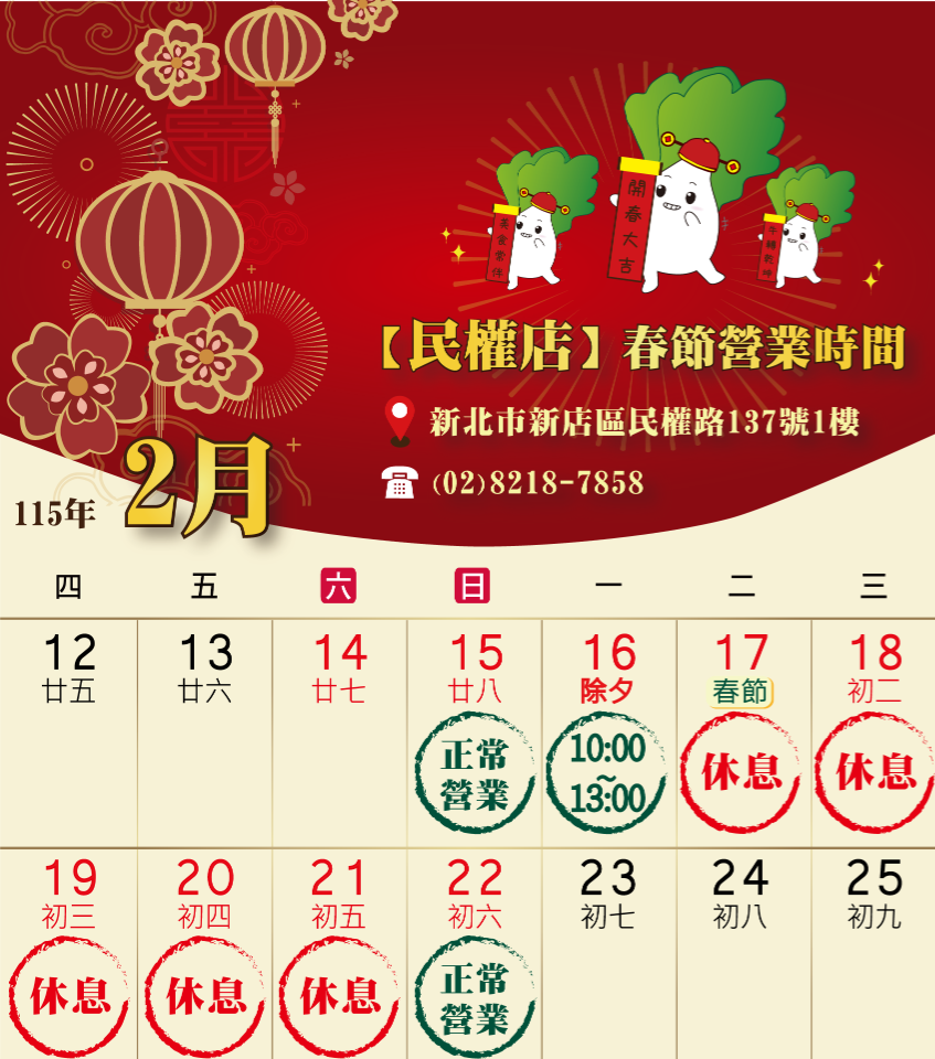 【115年春節營業時間】